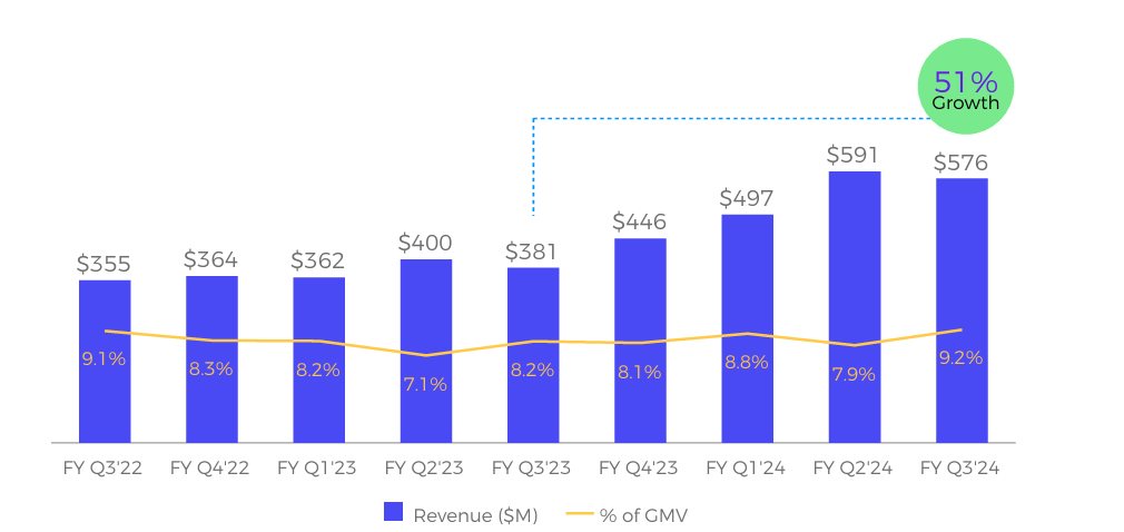 GMV Expansion: Gross Merchandise Volume surged to $7.1 billion, an 80% YoY increase, reflecting strong consumer adoption.