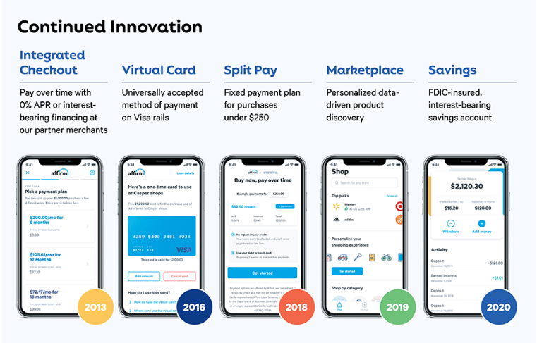 Affirm raised $300 million in its Series D round led by Thrive Capital, with GIC, Lightspeed Venture Partners, and Fidelity Investments also participating. This brought the company’s valuation to $2.9 billion. The funds supported product diversification, including the launch of a high-yield savings account.Series E (2020):