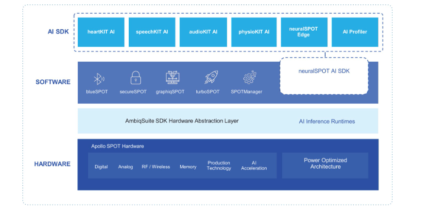 Ambiq’s software ecosystem complements its hardware by accelerating product development and reducing engineering complexity. The company provides a complete stack of software tools and enablement modules: