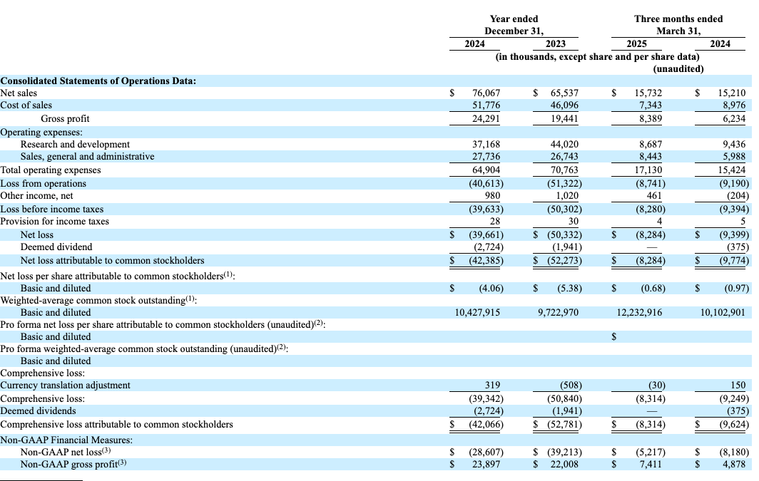 Ambiq’s growth is driven by real-world demand for AI at the edge, where decisions need to happen instantly and energy budgets are tight. In Q1 2025, net sales outside Mainland China surged 94% YoY, with 53% gross margins. Across 2024, sales reached $76.1M, up from $65.5M in 2023—reflecting global adoption across North America, Europe, and Asia.