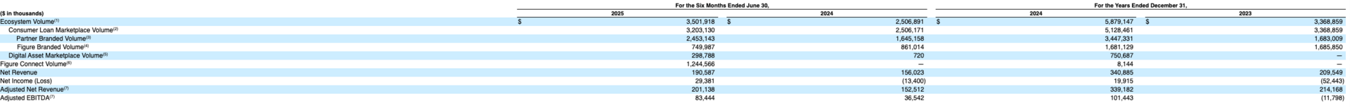 Figure's proprietary technology stack is engineered for scale and profitability. With 80% of partner-originated loans now utilizing its DART blockchain registry, Figure has built network effects that compound with every transaction. This infrastructure enabled the company to achieve profitability early: in the first half of 2025, Figure generated $191 million in revenue with 47% adjusted EBITDA margins and $29 million in net income—demonstrating that blockchain-based finance is not just faster and cheaper, but structurally more profitable than legacy systems.
