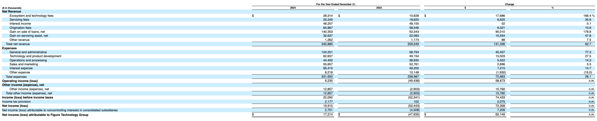 Figure's financial profile reflects blockchain-native infrastructure scaling rapidly: explosive topline growth, expanding network adoption, and improving unit economics powered by automation. Servicing asset valuation volatility influenced profitability mix, but the business added partners, deepened marketplace liquidity, and transitioned toward sustainable cash generation.