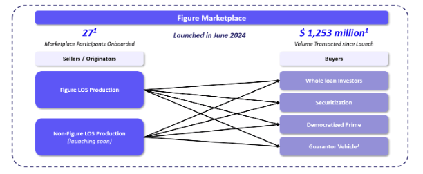 Figure's marketplace creates standardized assets with uniform underwriting, common documentation, and instant blockchain settlement. As third-party originators onboard via validator layers, network effects compound: more originators → more standardized loans → more buyers → deeper liquidity → more originators.