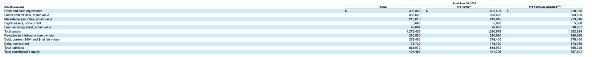 Partner-branded: $92M revenue in H1 2025 (+71% YoY); ecosystem/tech fees $43M (+265%) from $808M increased originations and +69% securitization volume.