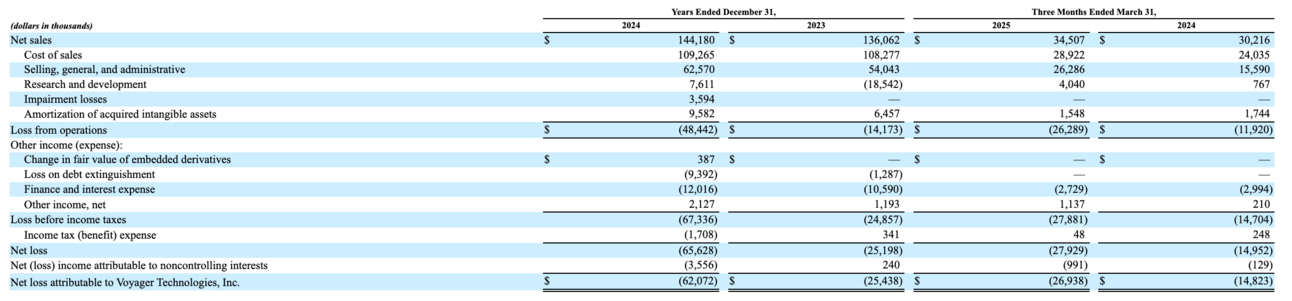 Voyager has yet to achieve profitability and continues to report substantial net losses—$65.6 million in 2024 and $27.9 million in Q1 2025. Future success depends on its ability to significantly scale revenue, improve cost structure, and manage expenses across an increasingly diversified business. There is no guarantee that Voyager will reach or sustain profitability.