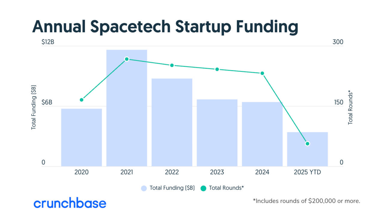 The broader spacetech market has remained resilient, with over $6 billion invested annually in 2023 and 2024—and 2025 tracking toward similar levels. Capital has consistently flowed into startups addressing national security, satellite innovation, and AI-driven geospatial intelligence. According to venture firm Space Capital, investor demand is at an all-time high.