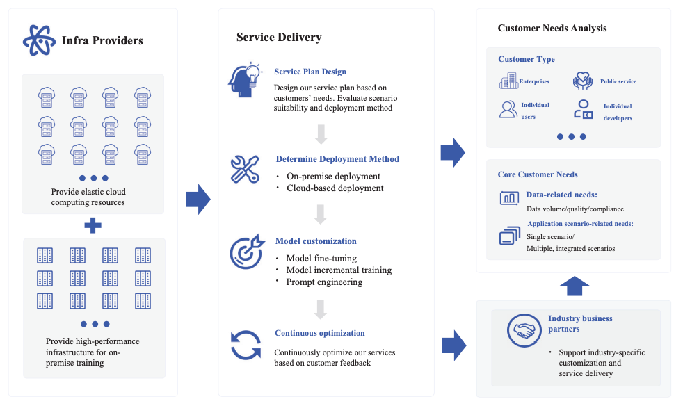 Connected deployments replace fragmentation: Over 8,000 institutional customers and approximately 80 million devices generating continuous usage patterns across language, multimodal, and agentic applications unified through the MaaS platform. More deployments improve model performance—enterprise feedback informing foundation model optimization, developer integrations expanding use case coverage.